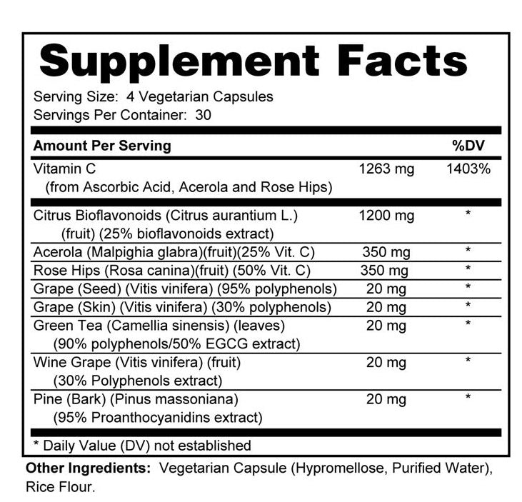 This unique potent formula provides a wide variety of flavonoids, food-based vitamin C, antioxidant nutrients, and ascorbic acid. Vitamin C is best taken with a large amount of flavonoids for optimal effect, which is what this formula delivers. A useful formula for enhancing the healing process, supporting the immune system, and supporting healthy veins, arteries, and hemorrhoidal tissue. The ingredients in this formula also make it beneficial for maintaining a healthy urinary tract, modulating stress, supporting healthy levels of inflammation, and speeding healing. It also supports a healthy allergy response, as well as healthy skin, hair, and nails. ‡